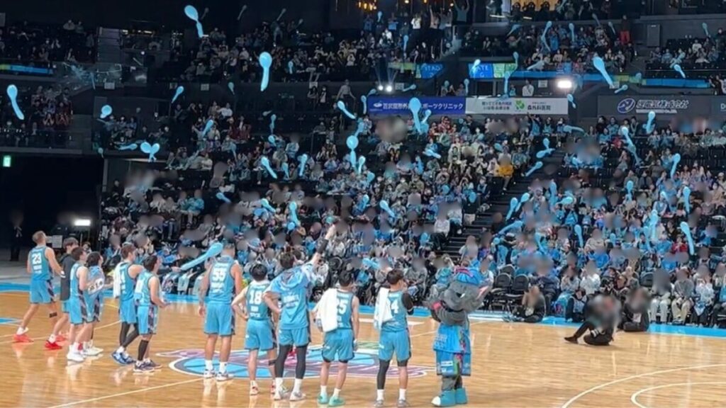 この日はホームの佐賀バルーナーズが勝ち、勝利時には試合後にジェットバルーンを飛ばします。
